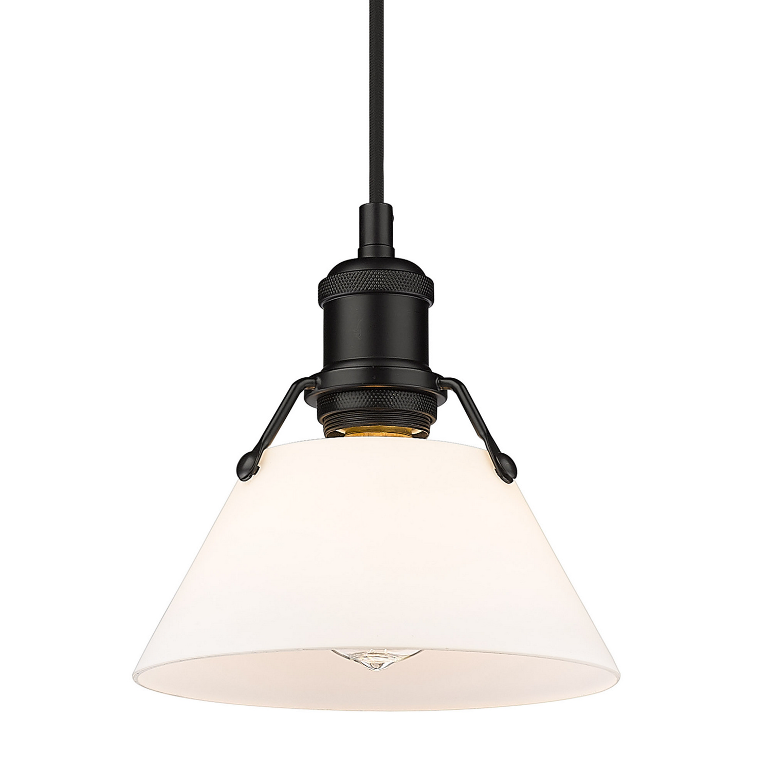 Bring industrial elegance into your home with the Yep by Golden Lighting Orwell 1-light 8in Pendant. This fixture features a refined opal glass shade paired with a matte black frame, creating a soft and welcoming glow. The opal glass shade is designed to diffuse light evenly, producing a gentle, glare-free ambiance that’s perfect for various settings. The matte black finish adds a contemporary touch, smooth to the touch and effortlessly adaptable to any decor theme. This pendant is perfect for kitchens, dining rooms, or bedrooms and is Damp Location Rated, making it ideal for spaces susceptible to moisture, including bathrooms and covered porches. Installation is straightforward with compatibility for sloped ceilings and adjustable height (15″ to 129″). With overall dimensions of 7.5″W x 7.5″H x 7.5″D, it requires one E26 Medium base bulb (not included), with a maximum wattage of 100. Brighten your space with this quality fixture that flawlessly blends functionality with style.