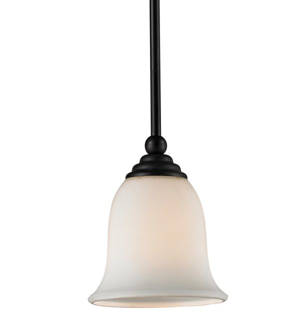This single light mini pendant’s matte black finish and matte opal shade brings class to any room without being overbearing.